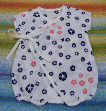 "丸善"で見つけた、かまわぬ×丸善コラボの『朝顔』で、ベビー用のロンパースを作りました。