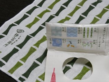 生地は【ひらい みも】 こぶた手ぬぐい『りんご・紅色』で作りました。薄いかな?と思ったので、中に総理の白地を入れてみたのですが、うーん、ちょっと分厚くなっちゃったかもしれません。