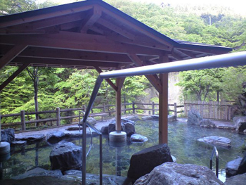 生まれたての朝日と新緑に囲まれた、早朝の露天風呂。。。